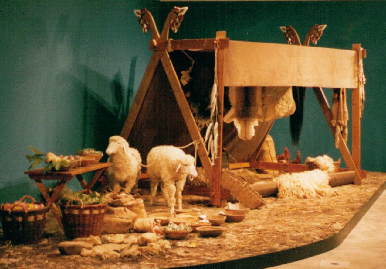 Jau labu laiku domājām par to, ka ļoti gribam paši savu telti, kuru varētu izmantot pasākumos kā telti un kā amatnieku nojumi. Sacīts - darīts, ķērāmies pie darba. :) Telts / nojumes dizainu izdomājām, balstoties uz Bonnas muzejā (Vācijā) redzētu telts rekonstrukciju izstādē par Vikingiem Reinas upes krastos. Tā izskatījās šāda: